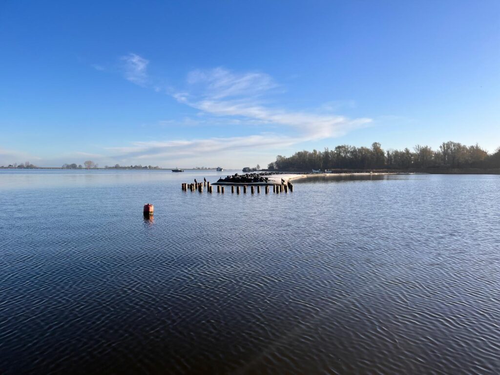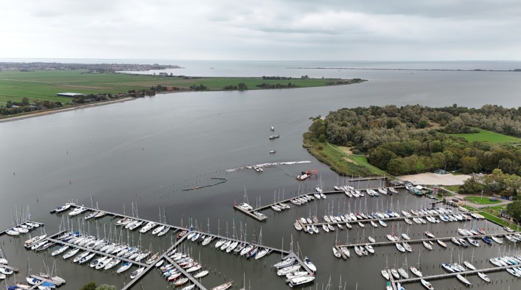 Wir fertigen einen Geotube, eine Art Wurst aus robustem, wasserdurchlässigem Stoff, gefüllt mit Erde und Schlamm aus dem Hafen. Wir vertiefen ein Stück Hafen direkt nördlich von Hemmeland-A und dieses Material gelangt in die Röhre. Anschließend wird zum Schutz ein Steinrand angebracht und mit der Zeit wächst der Wellenbrecher mit Schilf zu. Ein sehr natürliches Erscheinungsbild, passend zum Ufer des Hemmelandes. Er wird etwa 200 m lang und etwa 5 m breit.